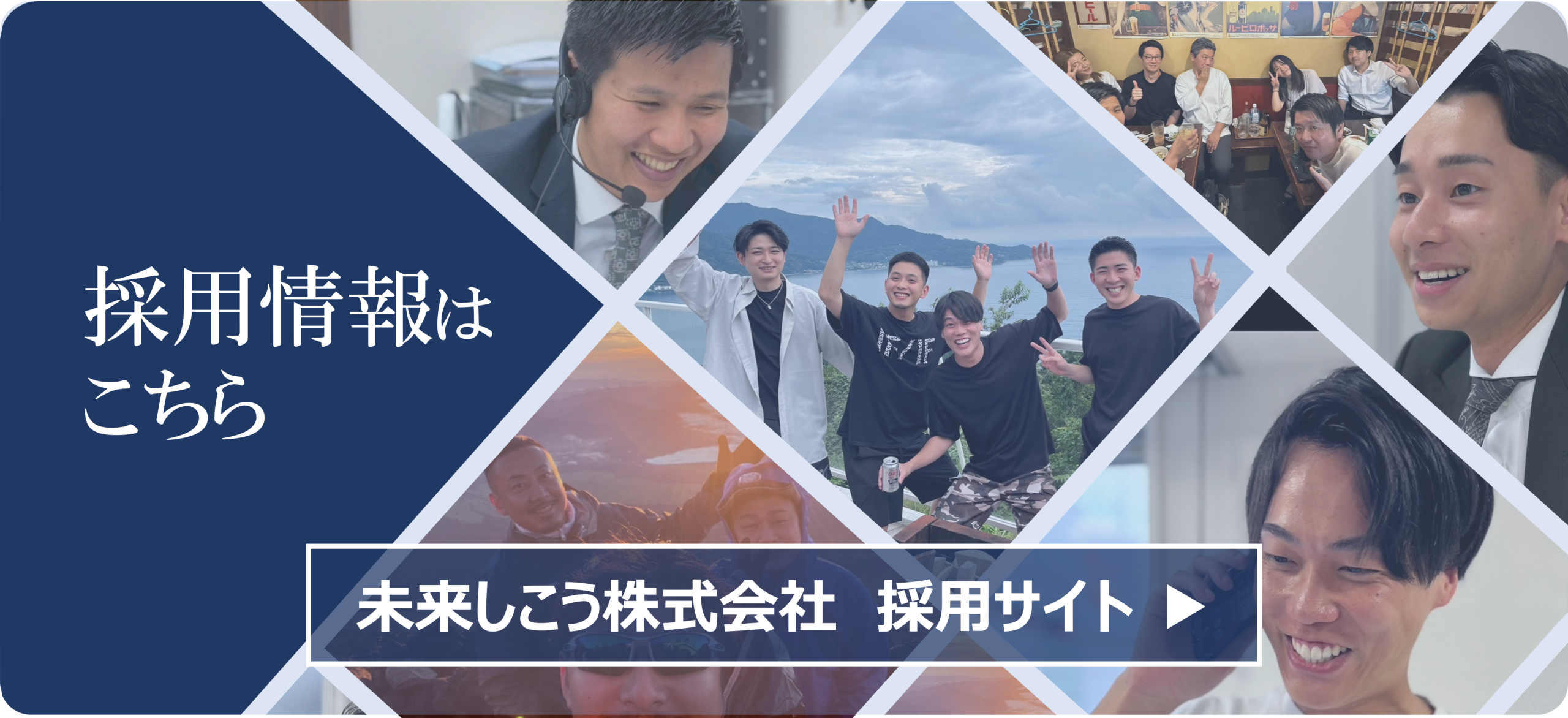 思考 施行 至高 志向 思考・施行・至高・志向 Thinking Enforcement Supreme Orientation 未来しこうは「思考・施行・至高・志向」を企業コンセプトに掲げており、経済情勢に柔軟に対応し、人材教育を徹底し未来ある企業であり続けます。 Scroll